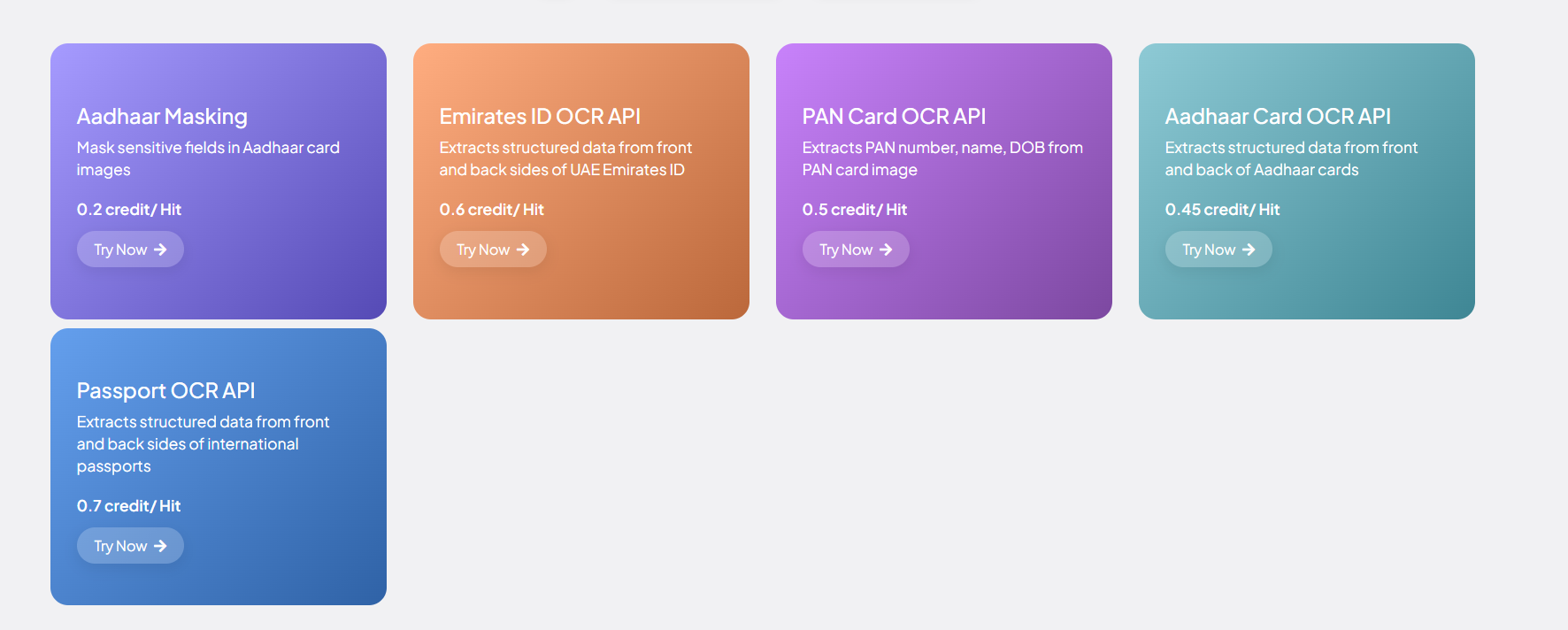 - Integration-ready: Works alongside other PCS services like Aadhaar OCR, PAN OCR, and Emirates ID OCR, streamlining identity verification and KYC processes.